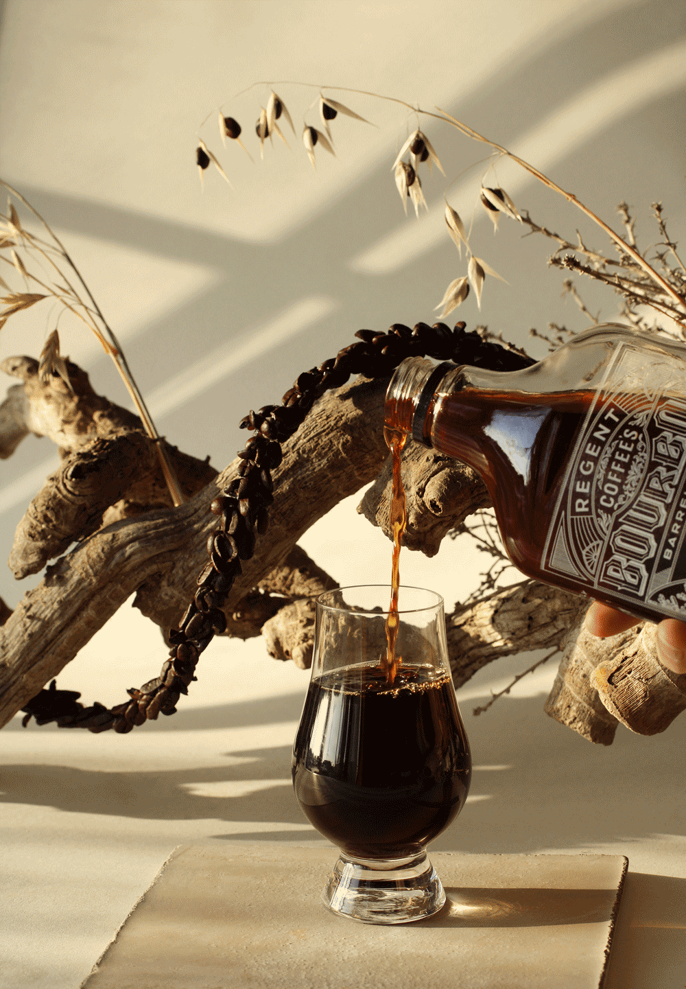 When the pandemic of 2020 struck and , Regent founder, Leon Nei , sought to create a flagship new bottled coffee beverage that could help sustain the business through the difficult period. Regent’s Bourbon Barrel Aged Cold Brew was born, and it required elevated packaging design that showcased the artisan crafted beverage as well as the brand’s values.